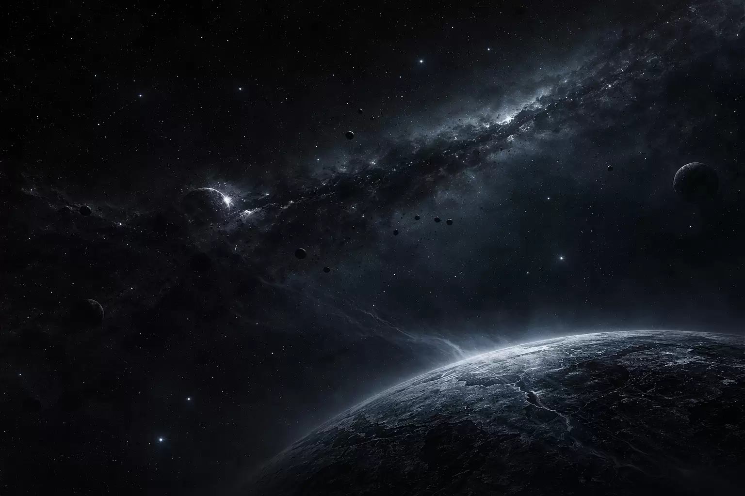 in noise, in shadow, in stellar dust.